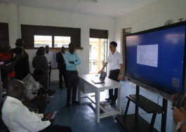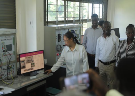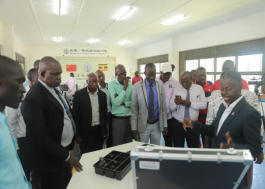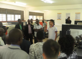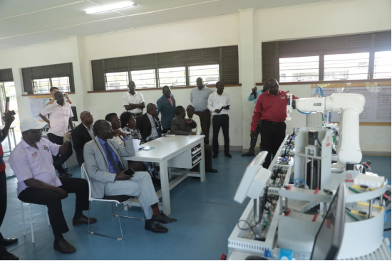 埃尔贡乌干达技术学院教师萨姆艾尔展示机电一体化实训设备教学使用