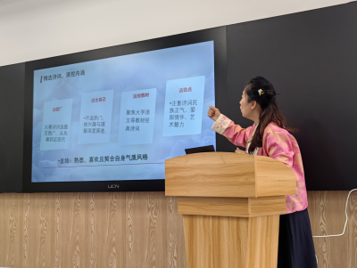 基础课部于近日举办“诗教中国”诗词讲解备赛经验分享会。刘婷婷老师作为第六届“诗教中国”诗词讲解大赛(天津赛区)的参赛者,向基础课部教师分享了备赛经验,为即将到来的第七届赛事预热。