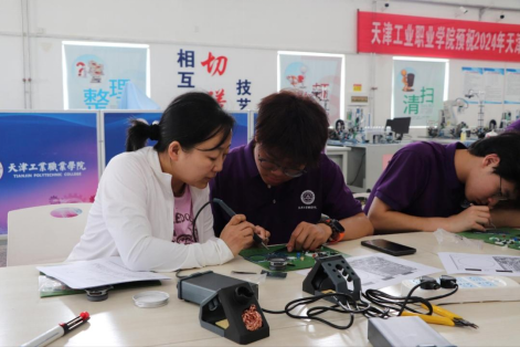 活动现场,首先专业老师们结合蓝牙音箱的具体构造为学生讲解了蓝牙音箱的工作原理、自制流程、工具的使用方法和注意事项等。然后,同学们通过电路图识读、元器件识别检测和插装、电子焊接操作、电路通电检测、产品组装调试等流程完成蓝牙音箱的制作。活动过程中同学们积极与老师沟通交流,注重细节,将理论知识与操作技能完美融合。