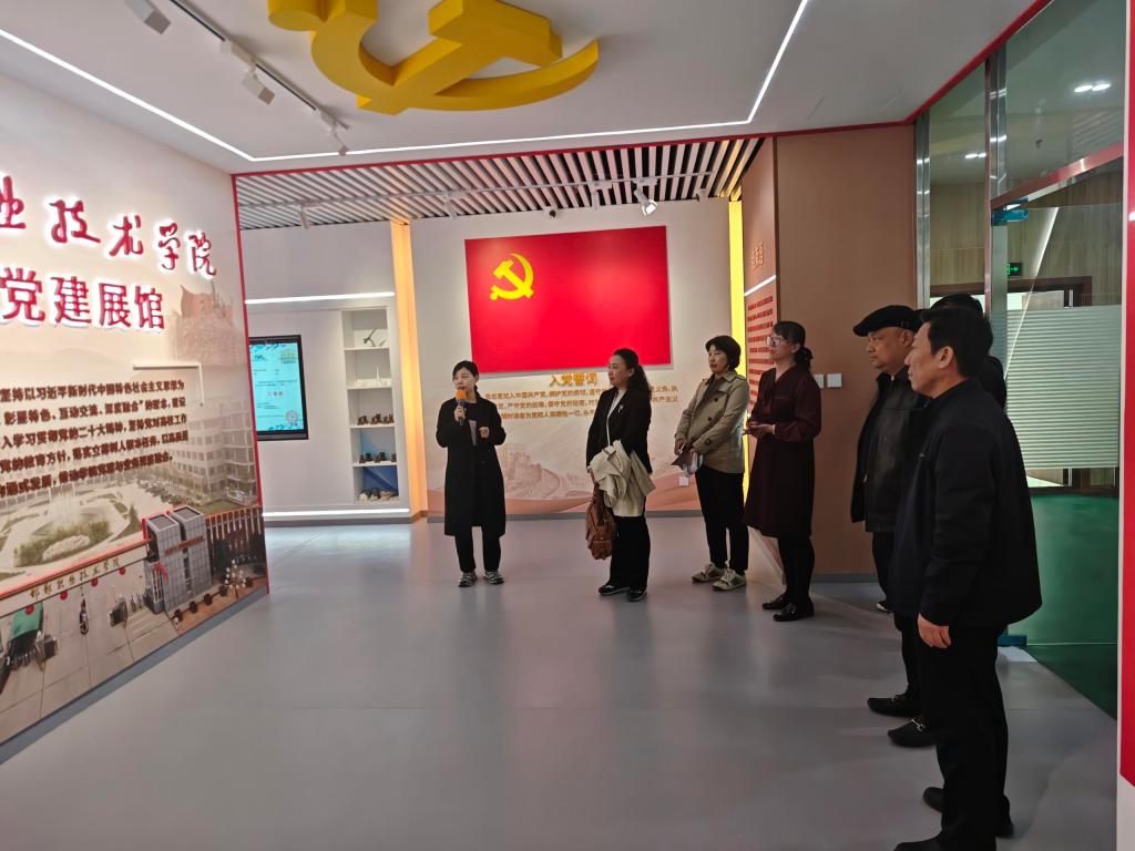 在邯郸职业技术学院,汪坪一行参观了邯郸知识产权学院、智慧党建展馆等,并与邯郸职业技术学院副校长张长声以及组织人事部、教务部、文法学院等部门进行座谈交流。双方就乡村振兴建设、学院“鲁班工坊”建设经验、知识产权转化利用、智慧党建等方面展开了深入交流、探讨。