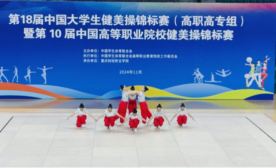 2024年11月14日至11月18日,由中国学生体育联合会主办的第18届中国大学生健美操锦标赛(高职高专组)暨第10届中国高等职业院校健美操锦标赛在重庆财经职业技术学院顺利举行。