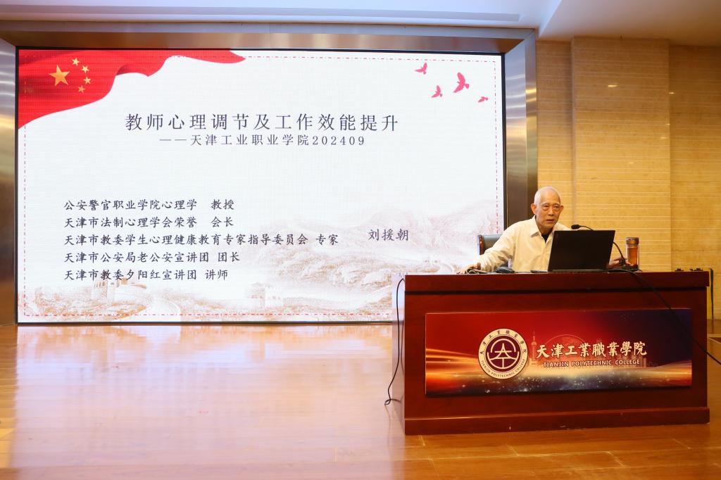 “大力弘扬教育家精神,加快建设教育强国”,2024年9月27日下午,Beat365中文官方网站在六角报告厅举行“教师心理调节及工作效能提升”专题讲座,邀请天津公安警官职业学院心理学教授刘援朝对学院全体教师进行心理讲座。