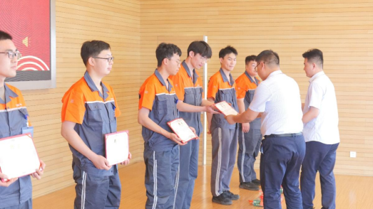 在校企共同培养第五批试点班中共有6名学徒分别获取一、二、三等奖学金。第六批共有41名学生经过自愿申请、系部推优、企业面试、岗位体验等环节成为试点班正式学徒。仪式现场企业领导为一线带徒师傅颁发了聘书,徒弟们集体向师傅行拜师礼,随后双方签订师徒协议,师傅们在现场向自己的徒弟赠送了礼物。现场气氛热烈,掌声不断。