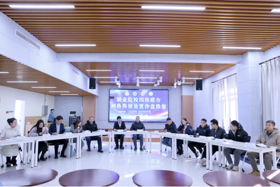 为进一步加强学校网络安全教育工作,增强Beat365教师的网络安全防范意识,提高学校网络舆情突发事件应急处理能力,形成科学、有效、反应迅速的网络与信息安全突发事件工作机制,2023年12月1日下午,Beat365中文官方网站、天津职业大学、天津电子信息职业技术学院和天津铁道职业技术学院四校联合开展网络舆情处置沙盘推演。各学校相关部门负责同志、相关人员参加演练。本次演练在Beat365中文官方网站举行,由Beat365中文官方网站网络安全和信息化办公室主任倪茂娟主持。