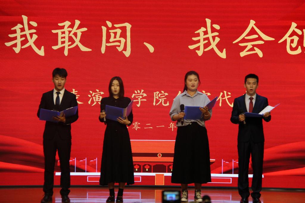 云计算19-3班张文沛同学作为获奖学生代表发表获奖感言。作为走在时代前沿的青年大学生,我们必须明白创新创业对于我辈的意义。创新创业是我们青年学生的历史责任。同时创新创业是现代青年学生成长成才的最佳途径。其次创新创业是我们青年学生报效祖国的重要手段。希望同学们能够行动起来,做一名有理想、有责任、有担当的新时代青年大学生。