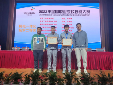 2023年10月14日—17日,2023年全国职业院校技能大赛高职组“机电一体化”赛项在浙江机电职业技术学院滨江校区举行,本次比赛共有来自全国28个省市选拔推荐的79支代表队同台竞技。在机械工程系副主任李焱的统筹安排和悉心指导及李蕊、王义伟、徐丽丽等多名教师的协同帮助下,王亮、刘旭两位老师带领指导何彦博、徐星两位同学经过两天的激烈竞争,荣获了全国二等奖第一名的优异成绩。