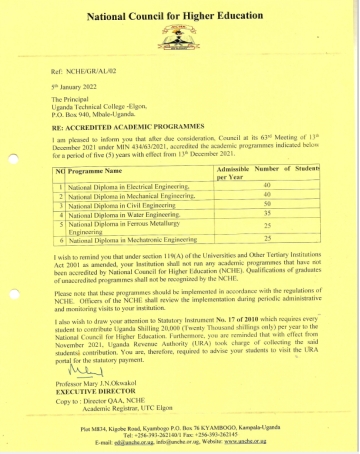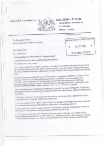 2020年初Beat365中文官方网站教务处牵头组织两个专业的国际化专业教学标准的制定,校企校三方完善修订了针对乌干达经济发展状况的两个专业国际化教学标准,为学历认证做好准备。2020年9月埃尔贡乌干达技术学院向乌干达国家高等教育委员会递交了关于申请乌干达鲁班工坊两个新专业审批的信函。