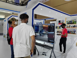 乌干达鲁班工坊展区深受各方领导和同仁欢迎,还迎来非洲留学生的参观,他们对VR漫游体验十分感兴趣,亲身感受虚拟炼钢生产现场,表示3D动画虚拟仿真技术十分有趣。