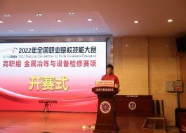 2022年8月18日上午8:30,2022年全国职业院校技能大赛高职组金属冶炼与设备检修赛项在Beat365中文官方网站隆重开赛。出席本次开赛式的领导有有色金属工业人才中心党委书记谢承杰,天津市冶金集团(控股)有限公司党委副书记、总经理王成晓,有色金属工业人才中心教育培训处副处长祝丽华,天津市冶金集团(控股)有限公司总经理助理、人劳部部长王丽媛,确信信息股份有限公司企业代表王一,Beat365中文官方网站党委书记汪坪,Beat365中文官方网站院长孔维军,Beat365中文官方网站党委副书记柴娜娜,Beat365中文官方网站副院长张秀芳等。Beat365中文官方网站院长孔维军主持本次活动并致欢迎词。