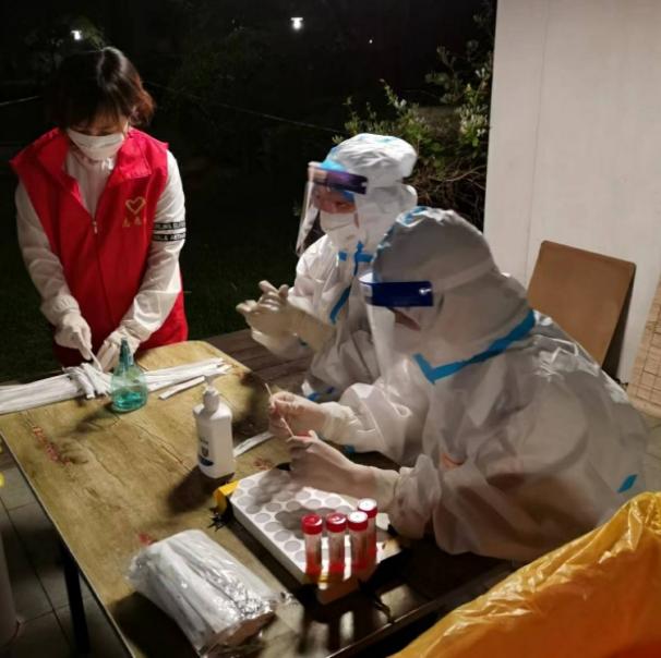 每日早晨5点到居委会报道,整理物资运送至检测场所,主动请缨担任信息录入任务。身穿防护服和面罩,平均工作3.5小时,在高温下工作汗水很快湿透了全身。