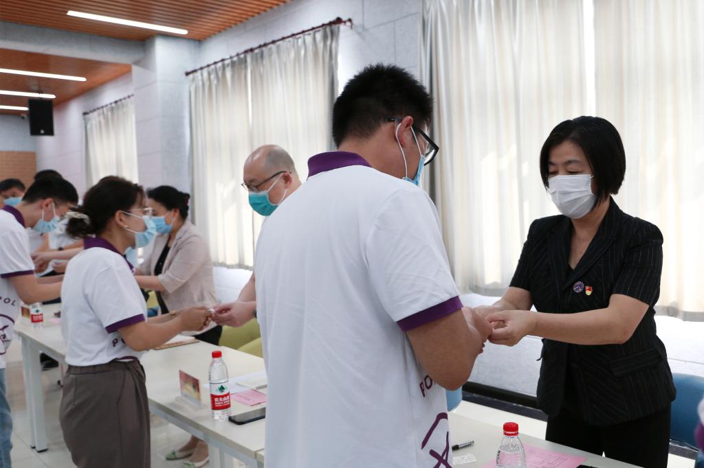 此次活动在雄壮的国歌声中拉开序幕。30位新入职教师在接受与会领导颁发的校徽后,面向国旗庄严宣誓,忠诚党的教育事业,遵守教育法律法规,履行教书育人职责,引领学生健康成长的“四有”好老师。随后,学院来自教育、教学、管理岗位的11位教职工代表围绕学院发展,立足本岗踊跃发言,分享心得体会。