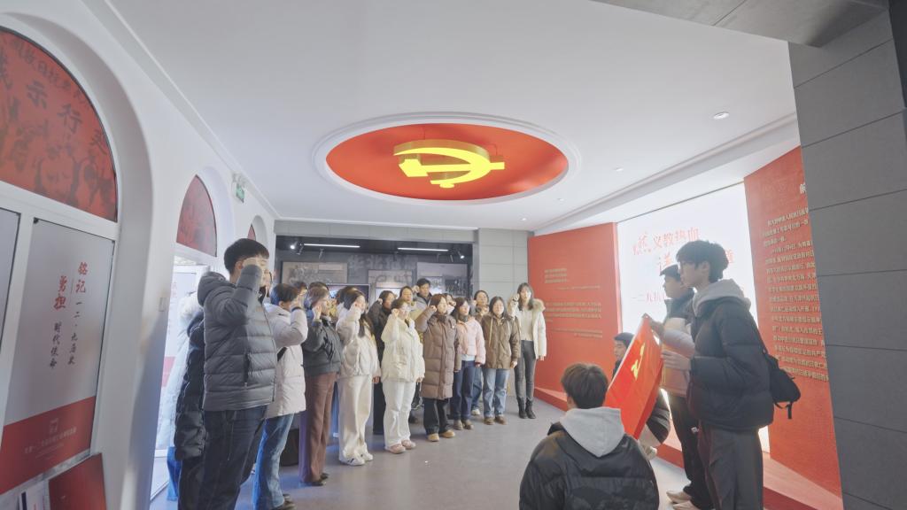 在纪念馆全体党员教师进行了庄严的宣誓仪式。共同高举右拳,庄严承诺继承先烈遗志,赓续红色血脉,立志为民族复兴贡献力量。