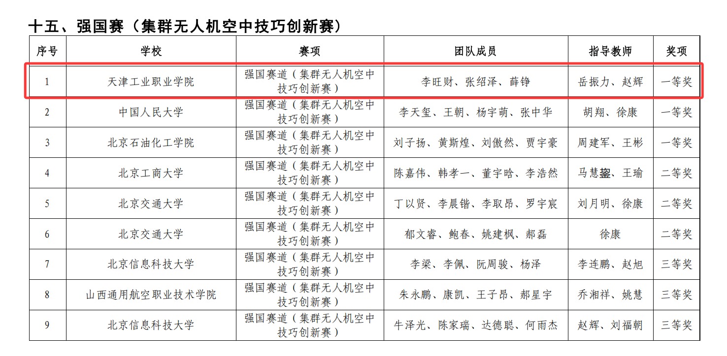 2025年11月15日,2025年华北五省(市、自治区)大学生机器人大赛在北京信息科技大学成功举办。机械工程系无人机应用技术专业师生团队参加了强国赛道集群无人机空中技巧创新赛并从17个高校参赛队中脱颖而出,最终获得一等奖第一名的优异成绩。