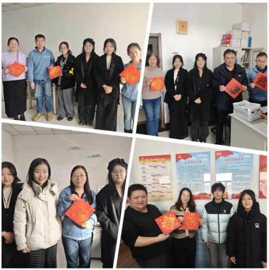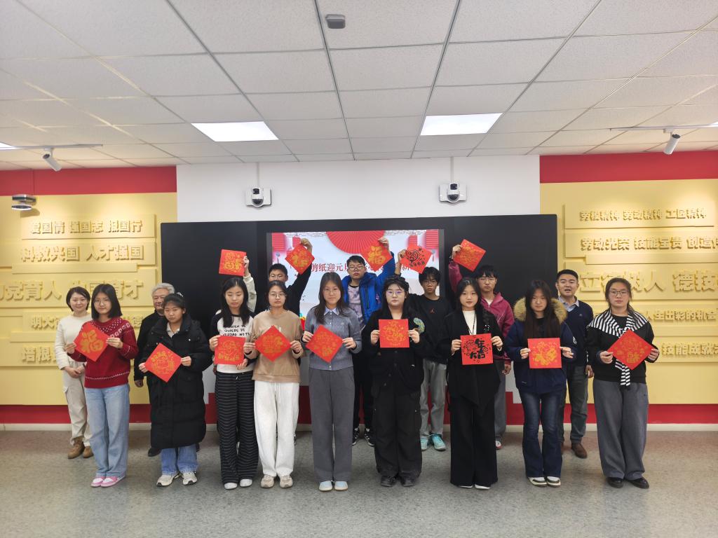 最具温度的 “匠心送福” 环节将活动推向高潮。学子们带着亲手制作的剪纸作品,走进办公室、教室,向师长、学长真诚送上元旦祝福。他们清晰阐述创作思路,礼貌传递温暖心意,在锻炼沟通交往能力的同时,让非遗文化的温度与工匠精神的光芒洒满校园。