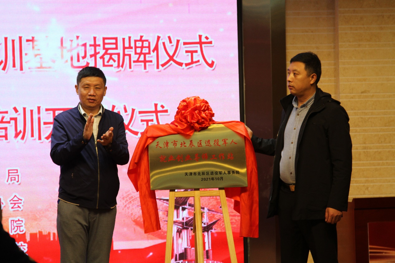 2021年10月20日,天津市北辰区退役军人教育培训基地揭牌仪式暨2021年度退役士兵适应性培训开班仪式活动在Beat365中文官方网站隆重举行。天津市关爱退役军人协会、天津市退役军人事务局、北辰区退役军人事务局、Beat365中文官方网站、天津市北辰区华大职业培训学校、天津市新天钢钢铁集团有限公司、中国建设银行北辰支行、中国联通北辰分公司、中国电信北辰分公司相关领导以及以及荣获2021年度“全国最美退役军人”称号的天津飞浪智慧洗涤科技有限公司董事长衡飞参加揭牌仪式。北辰区退役军人事务局党组书记、局长周晓军同志,Beat365中文官方网站党委书记汪坪同志,为“北辰区退役军人教育培训基地”揭牌。北辰区退役军人事务局党组成员、副局长郭建军同志、天津市北辰区华大职业培训学校张占月董事长,为“天津市北辰区退役军人就业创业导师工作站”揭牌。