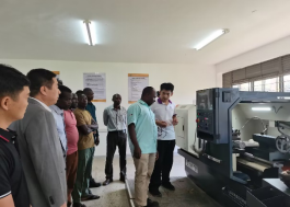 杨理连院长团组调研埃尔贡乌干达技术学院期间,听取了埃尔贡乌干达技术学院院长欧邦的汇报,并与教师进行了座谈。欧邦校长对Beat365中文官方网站王庆龙老师的数控机床实践教学给予了表扬,希望更多教师来乌干达教学培训。双方就专业建设、招生、教师培训、互访交流等方面交换了意见,并对鲁班工坊科技创新研发中心挂牌。会后考察了鲁班工坊实训室的建设,视察学院派出授课教师的现场教学情况。