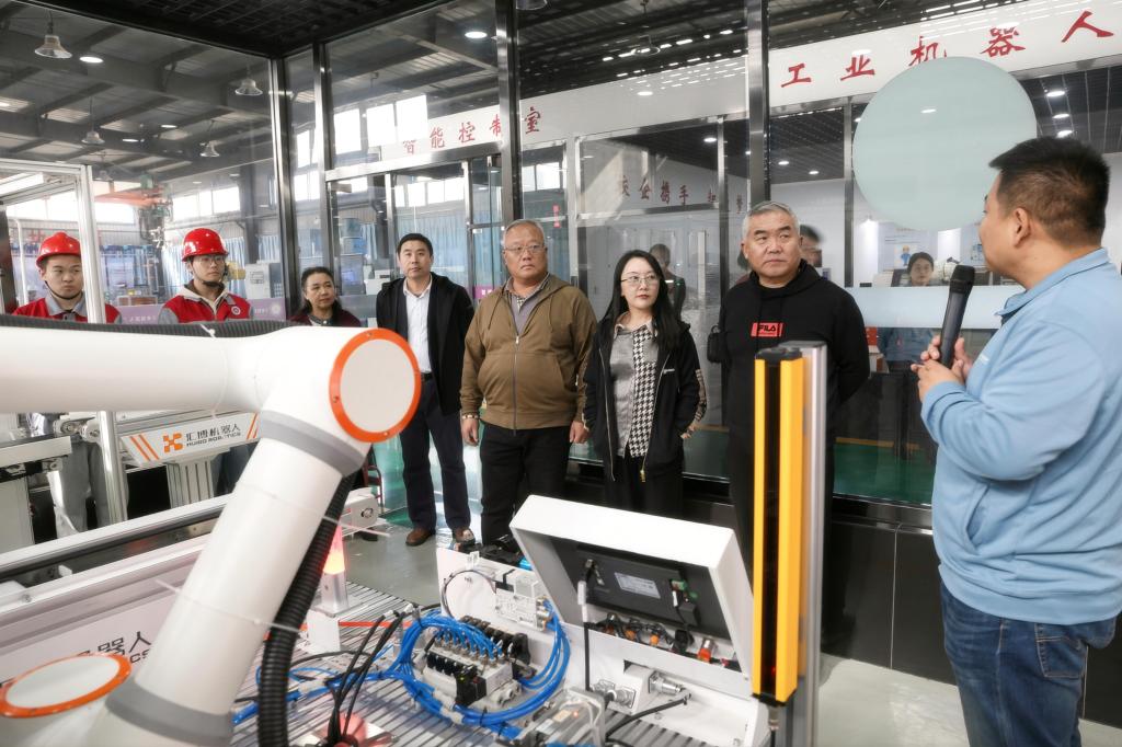 会后,天唐集团董事长一行参观了学院轧钢数字孪生生产工厂实训室和智能制造生产车间。
