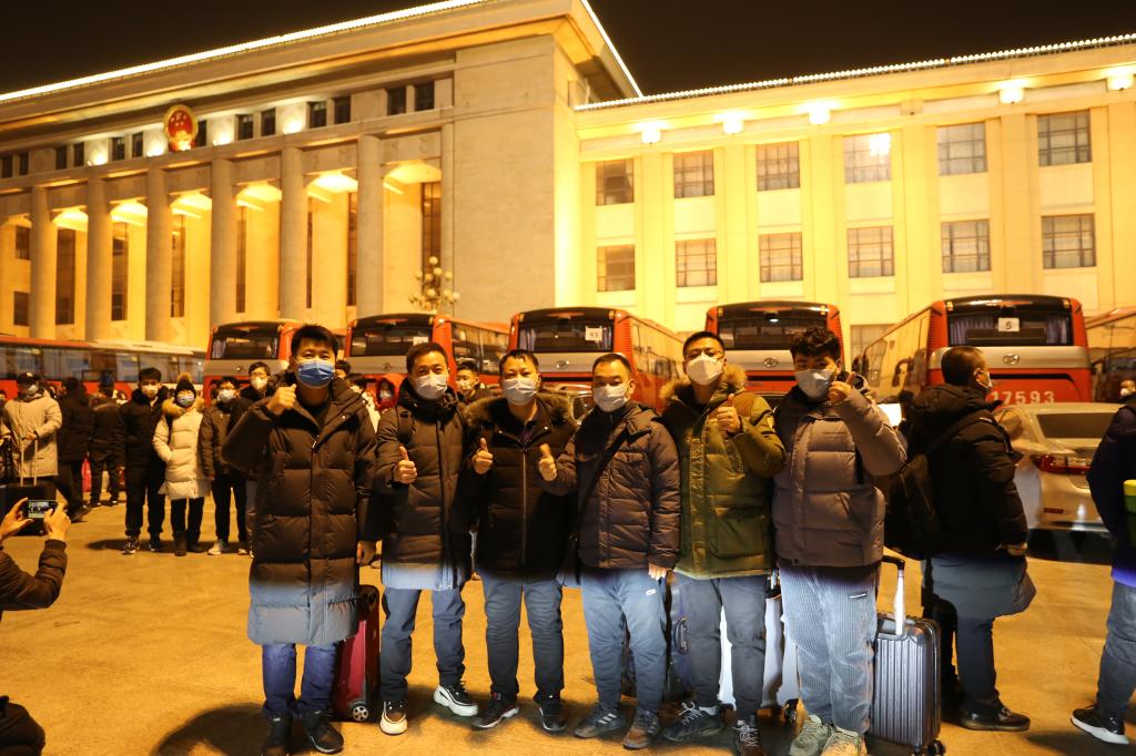 “钢铁侠”们整理好行装,带着防疫物资,在夜晚的寒风中挥别送行的家人、同事,毅然奔赴津南,他们用钢铁般的意志筑起钢铁般的城墙,守卫我们的津城!