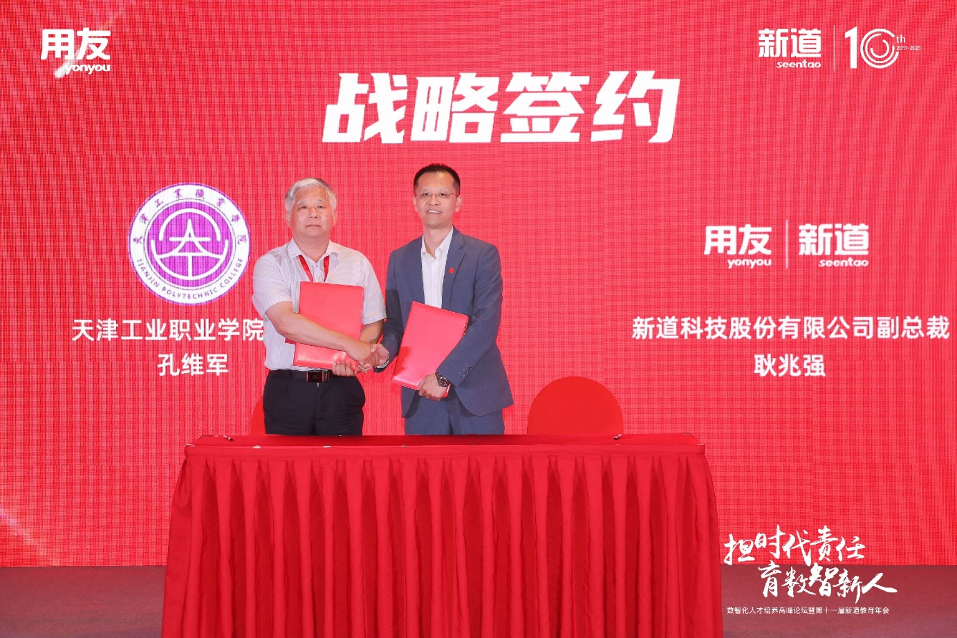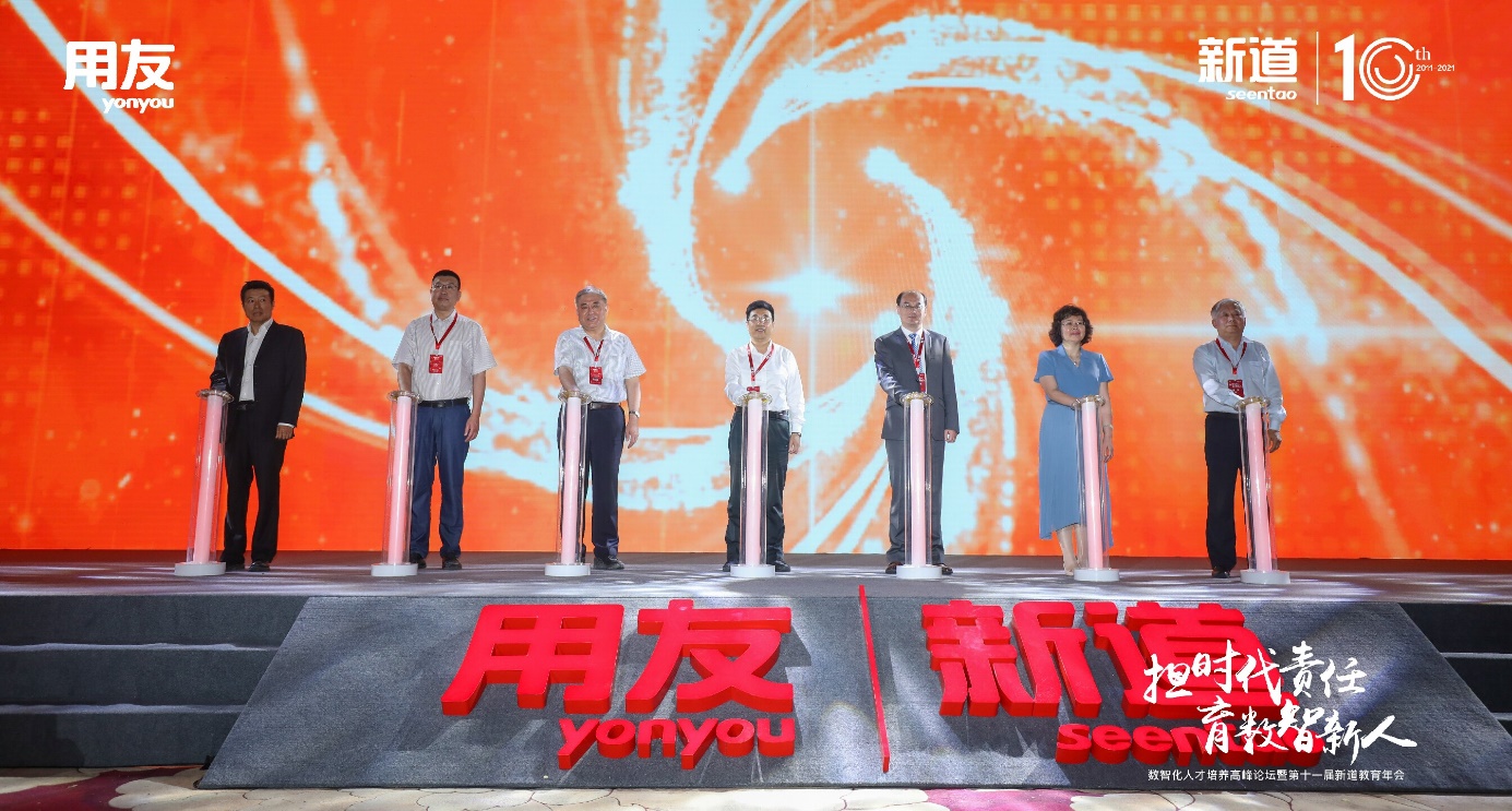 2021年5月29日,由用友网络科技股份有限公司、新道科技股份有限公司共同举办的数智化人才培养高峰论坛在北京举行。论坛以“担时代责任 育数智新人”为主题,来自全国各地的院校领导、专家、企业代表代表1000余人相聚北京,探寻职业教育高质量发展的内涵和路径,探索校企协同模式人才培养的模式和方法。学院孔维军院长、工业与信息化系张涛主任应邀出席,孔院长作为职业院校的特邀嘉宾参与论坛一系列活动。