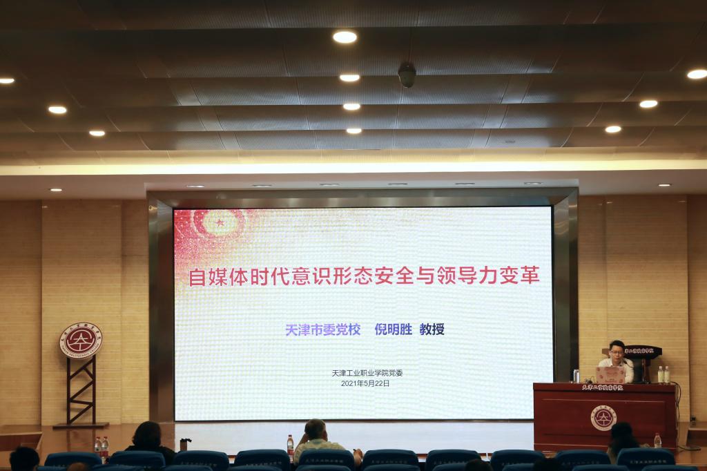 为加强学院意识形态工作,确保网络意识形态安全,2021年5月22日,Beat365中文官方网站邀请天津市委党校倪明胜教授来我院做题为“自媒体时代意识形态安全与领导力变革”专题讲座。学院领导班子、全体中层干部、教师共计212人参加了讲座。