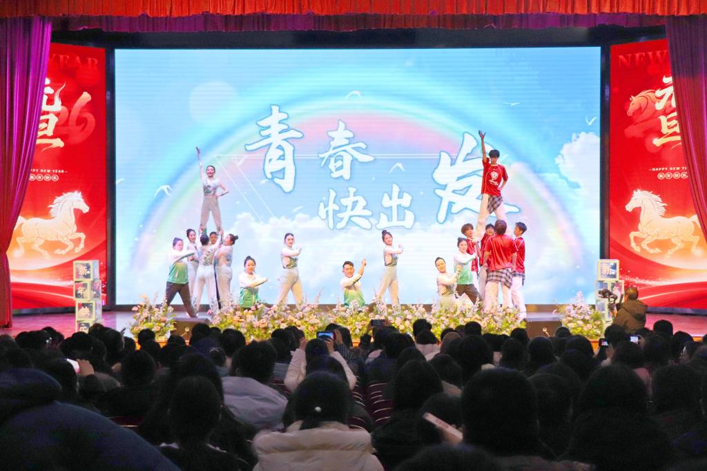 联欢会在热情洋溢的开场舞蹈《我爱健美操》中拉开帷幕。主持人回顾学院“十四五”期间在人才培养、教学科研等领域的丰硕成果,展望“十五五”崭新征程,瞬间点燃全场氛围。