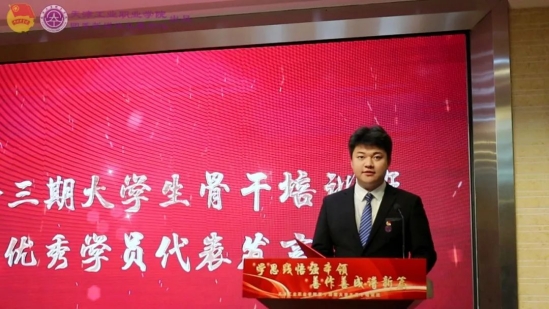 活动中,学院学生会执行主席牛嘉旭代表第十三期大学生骨干培训班优秀学员发言,他表示各级学生骨干要牢记为同学服务的初心,努力建设同学们想得起、找得到、靠得住的学生会组织。同时希望全体学员能够自觉践行“颐德砺能天工匠心”的校训精神,立大志、明大德、成大才、担大任,不断增强做中国人的“志气、骨气、底气”,努力成为堪当民族复兴重任的时代新人。